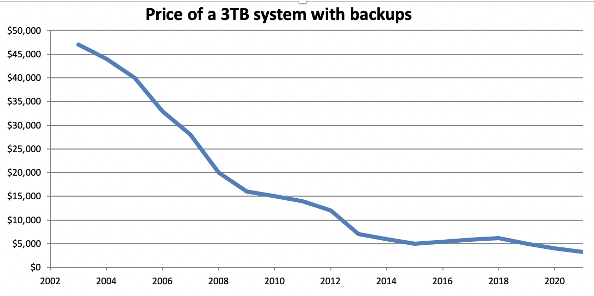 - Total storage (3TB) cost (as of April 2003): $47,000