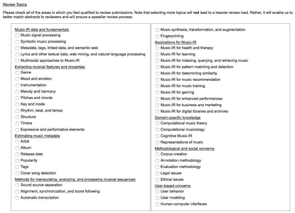 Outline for Winter 2017ISMIR Paper submission deadline: 21 April 2017 (topics) |
